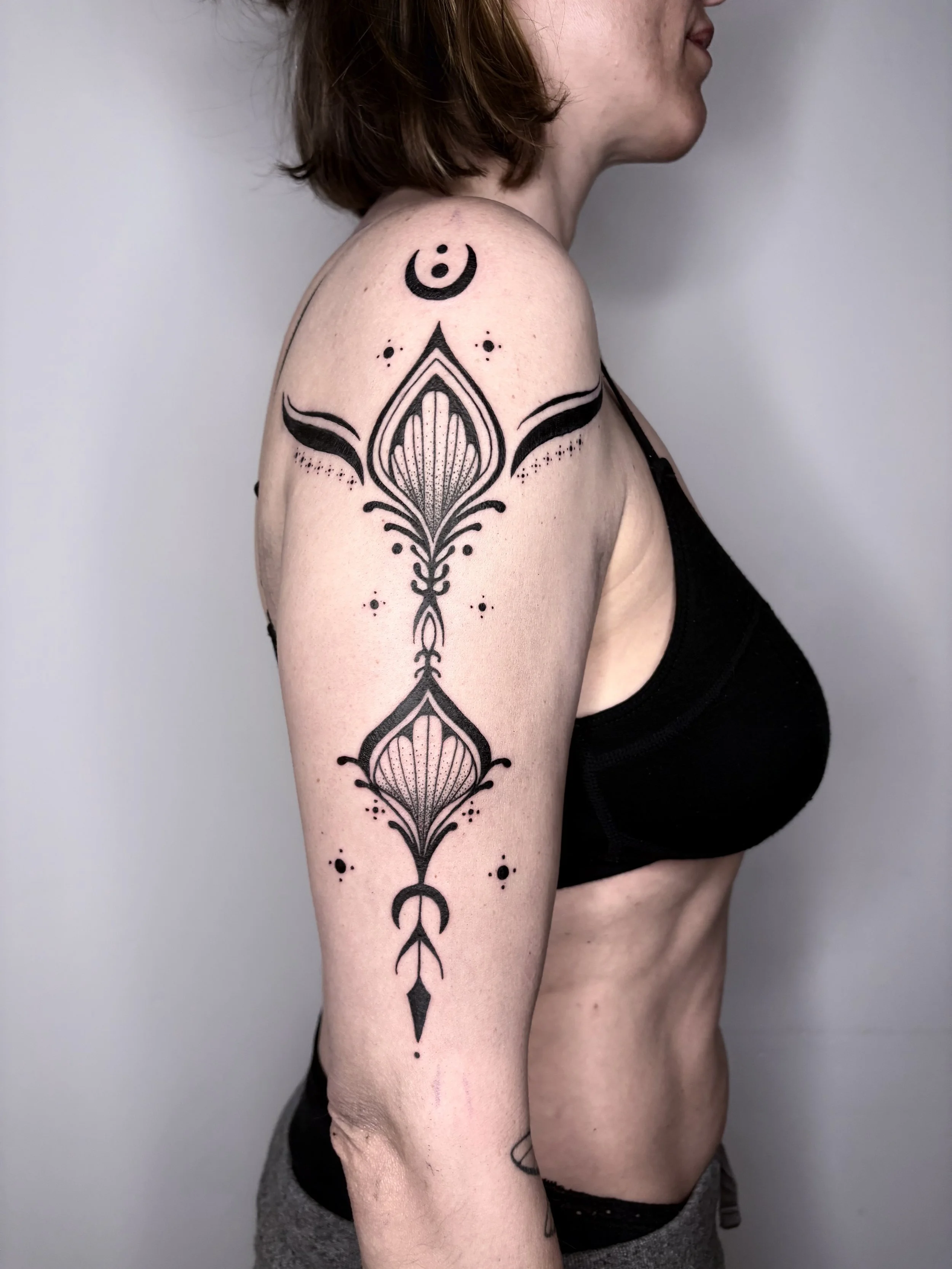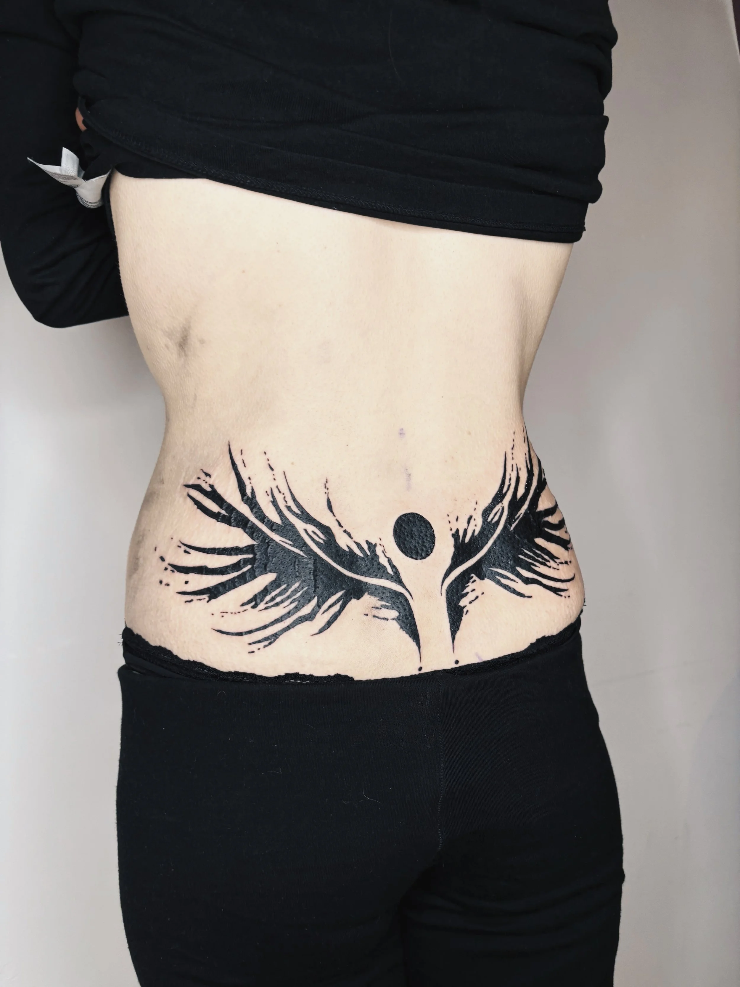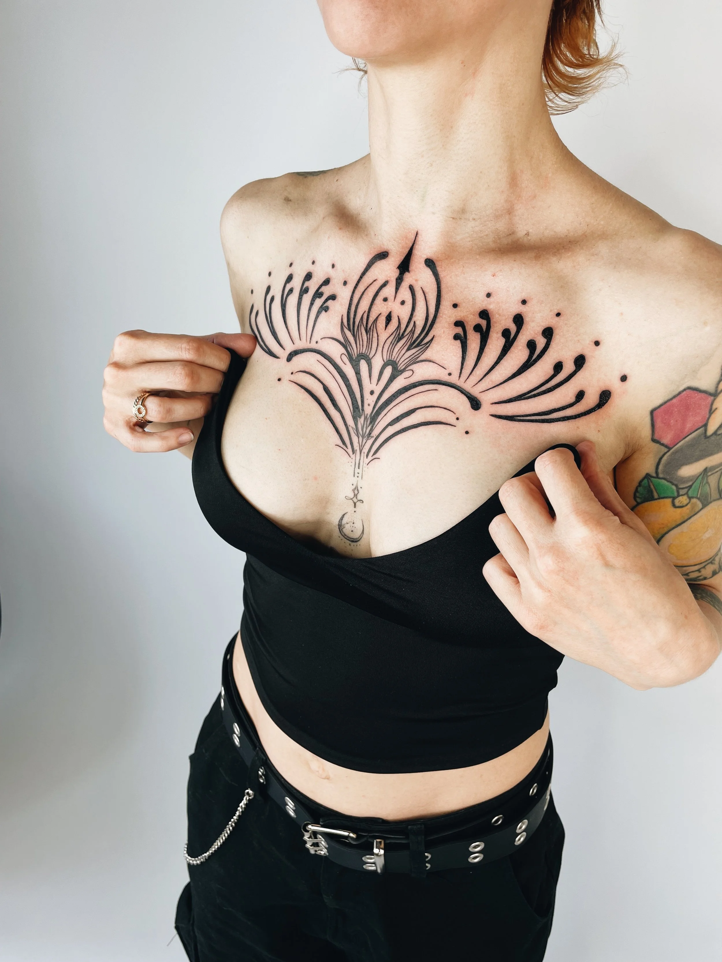 My tattooing is dedicated to women + Flinta if you like my art. I’m creating a space where art meets healing. We’ve been through a lot, and my work is a way to reclaim our bodies, our stories, and our power. Through my tattoos I try to support your individual spiritual healing process.