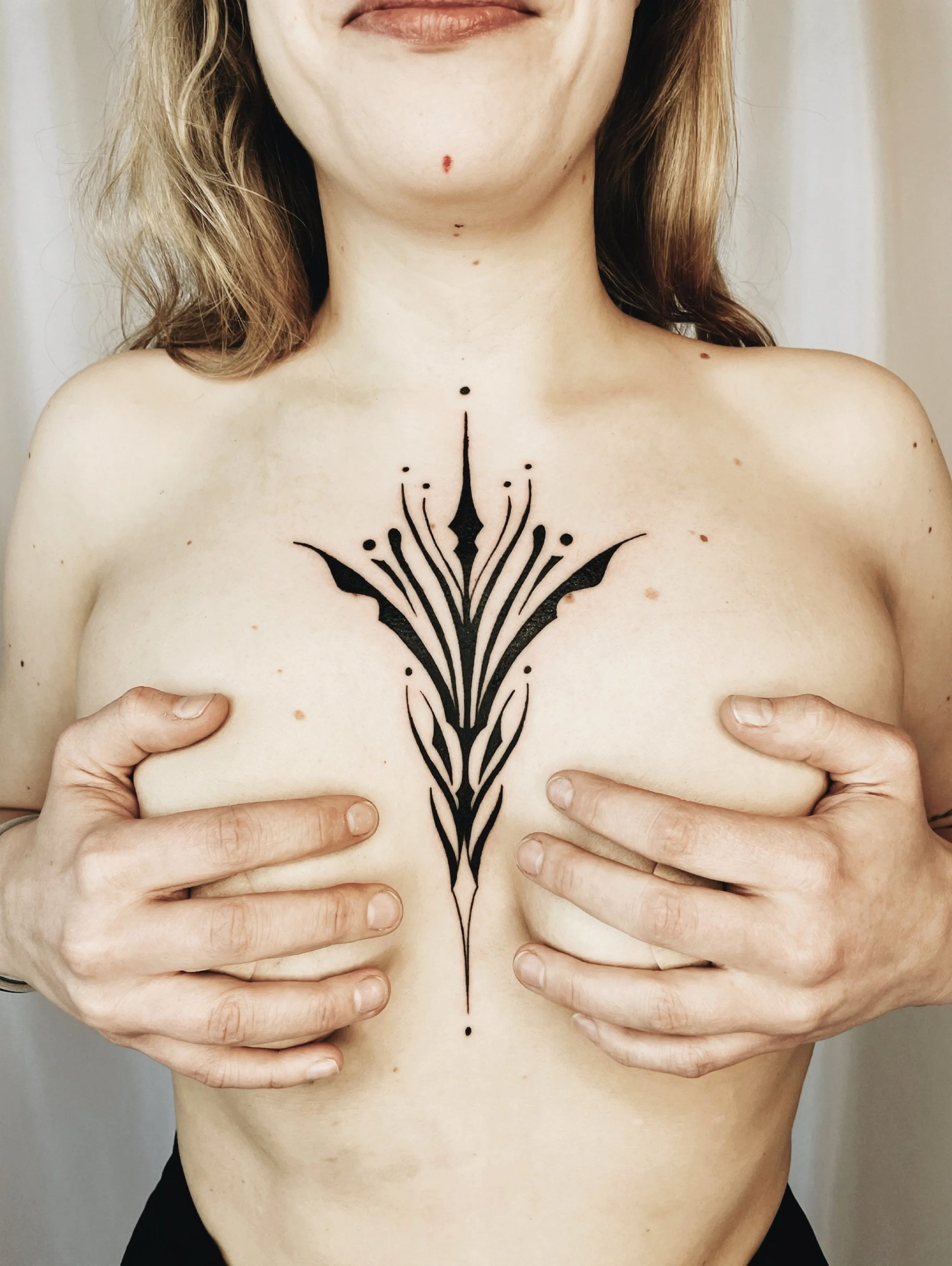 merge dark, floral, and tribal elements to show that femininity is not just soft and delicate—it’s bold, raw, and full of depth. Darkness and light coexist, just like in us. My designs flow with the body, embracing both the spiritual and the primal.